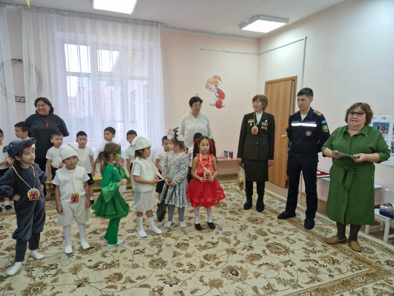 С целью формирования у детей представления о пользе и вреде огня, закрепления у детей элементарных правил пожарной безопасности через театрализованную деятельность, педагог Н.Батарбекова и муз.руководитель Г.Мурашбекова и дети группы предшкольной подготовки «Звездочка» показали музыкально -театрализованное представление «Пожар в лесу».