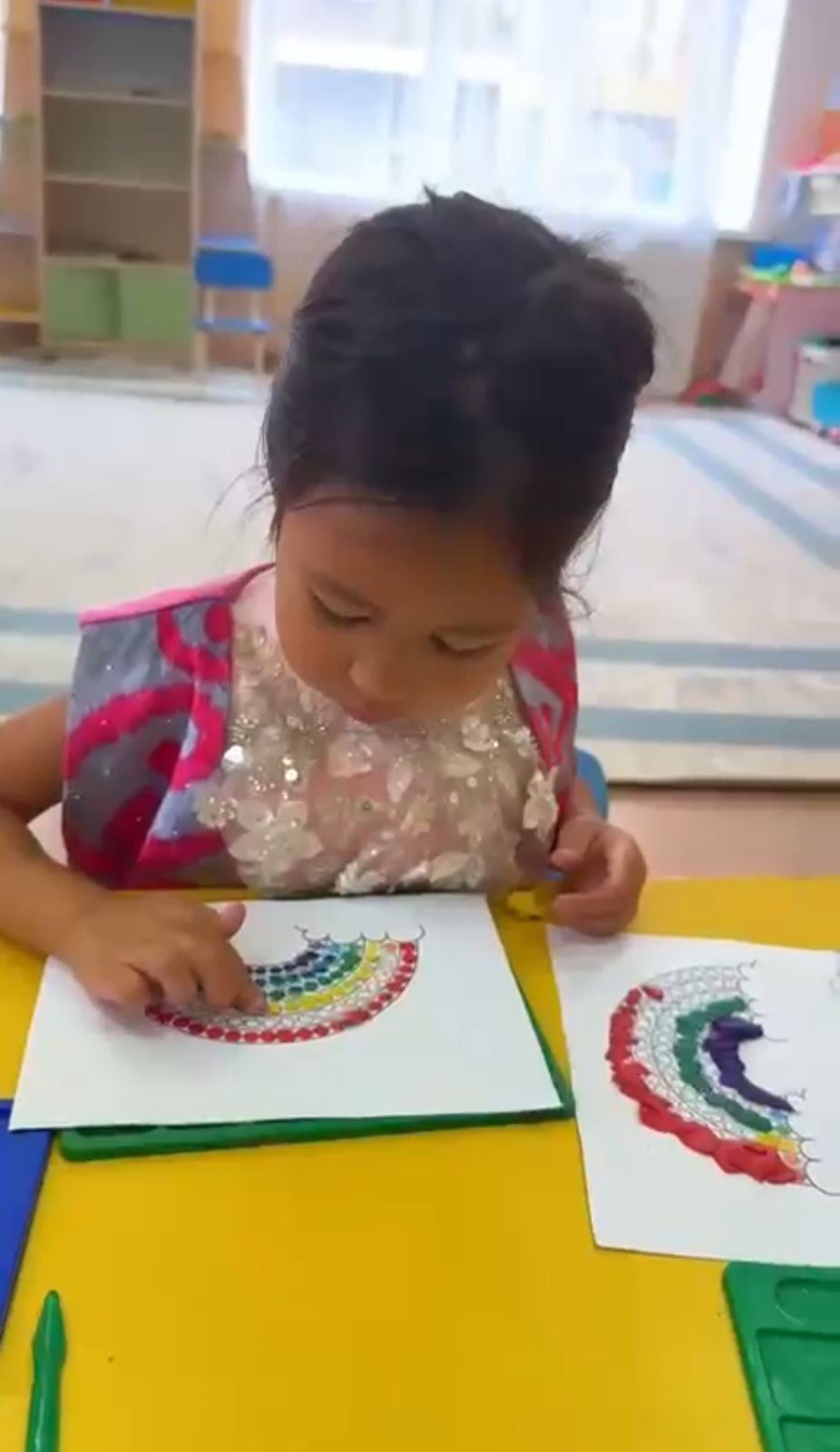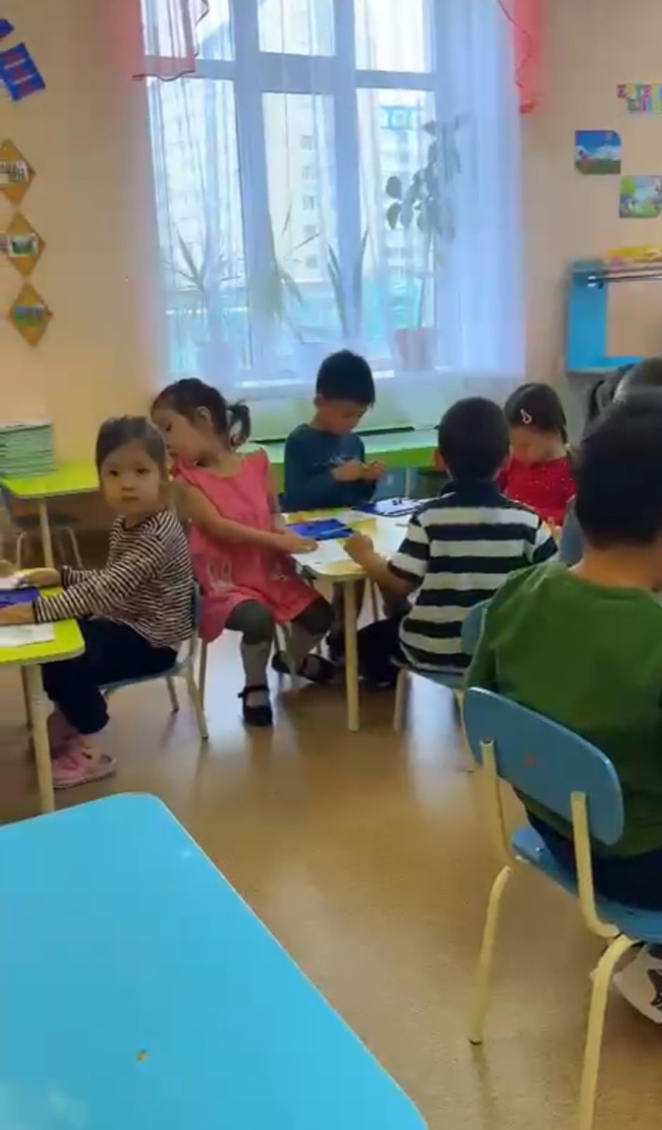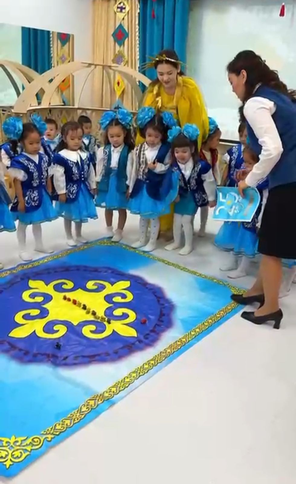 Мақсаты: Балаларды сандарды тануға, сан мен нүктелерді сәйкестендіруге үйрету. Балалардың ойлау қабілеттерін дамыту, есте сақтауын күшейту. Қимыл белсенділігін жетілдіру.
